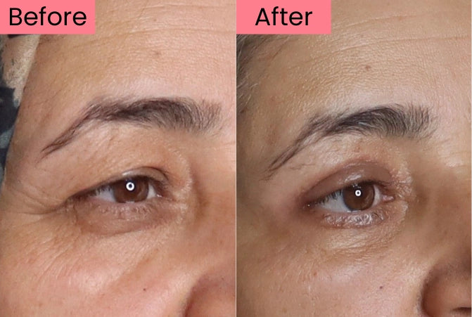 Individual results vary, but typical timelines we see: hydration and reduced tightness in 1–2 weeks; brighter under-eyes and reduced puffiness in 2–4 weeks; visible softening of fine lines and crow’s feet in 4–8 weeks with consistent nightly use. For best outcomes combine nightly use with morning sunscreen and a gentle hydrating routine.